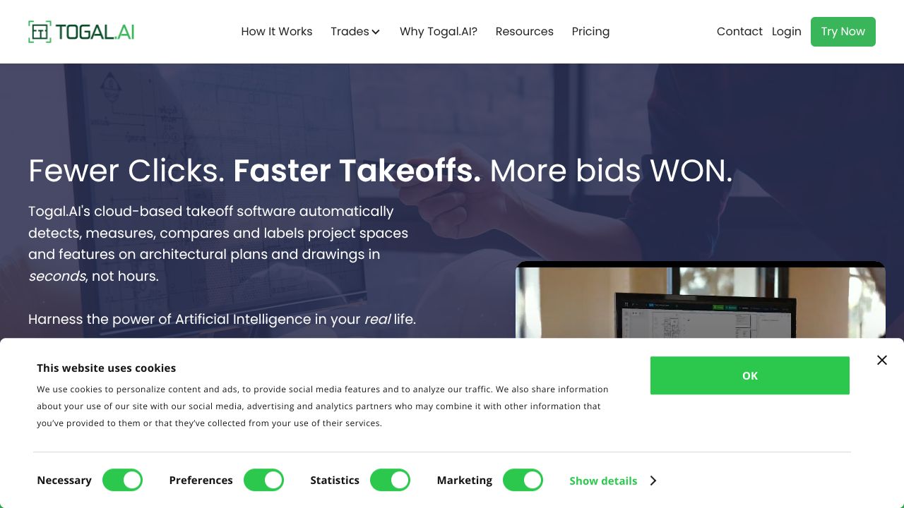 The construction industry has long been burdened by the "analog bottleneck"—the grueling process of manual quantity takeoffs where estimators spend hundreds of hours clicking through 2D plans. Togal.AI represents a paradigm shift in the construction analytics sector, leveraging deep learning models to compress weeks of estimation work into seconds. Built on a foundation of proprietary computer vision algorithms, Togal.AI isn't merely a digital ruler; it is an intelligent interpretation layer that sits between raw architectural PDFs and the financial bidding process. At its core, the platform utilizes advanced neural networks to identify, classify, and measure spatial elements with a precision that rivals human estimators while operating at machine speed.